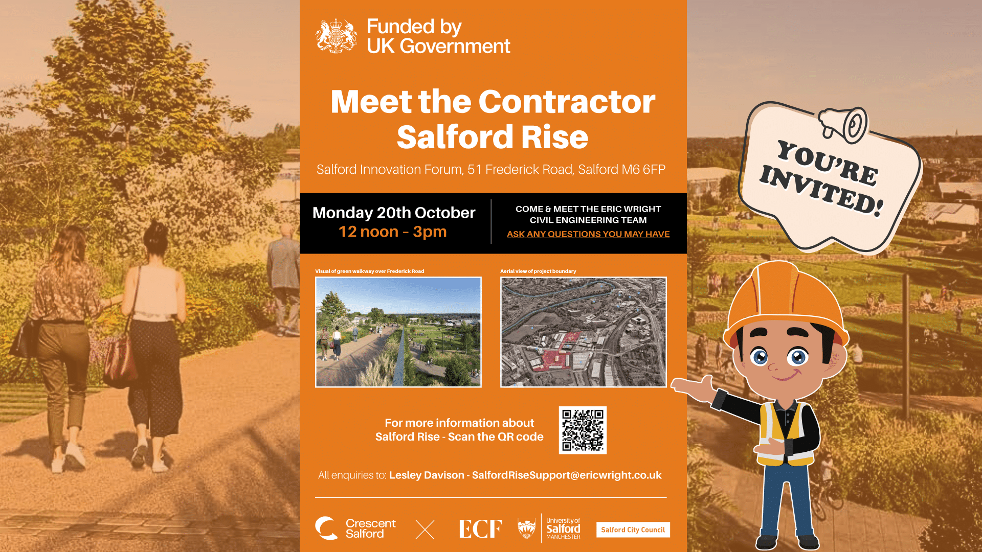 Salford Innovation Forum is excited to be hosting a Meet the Contractor event for Eric Wright Civil Engineering and the Salford Rise scheme on Monday 20th October, between 12pm and 3pm.